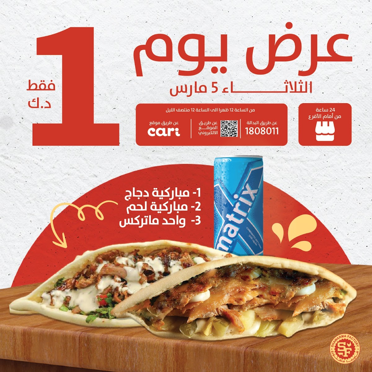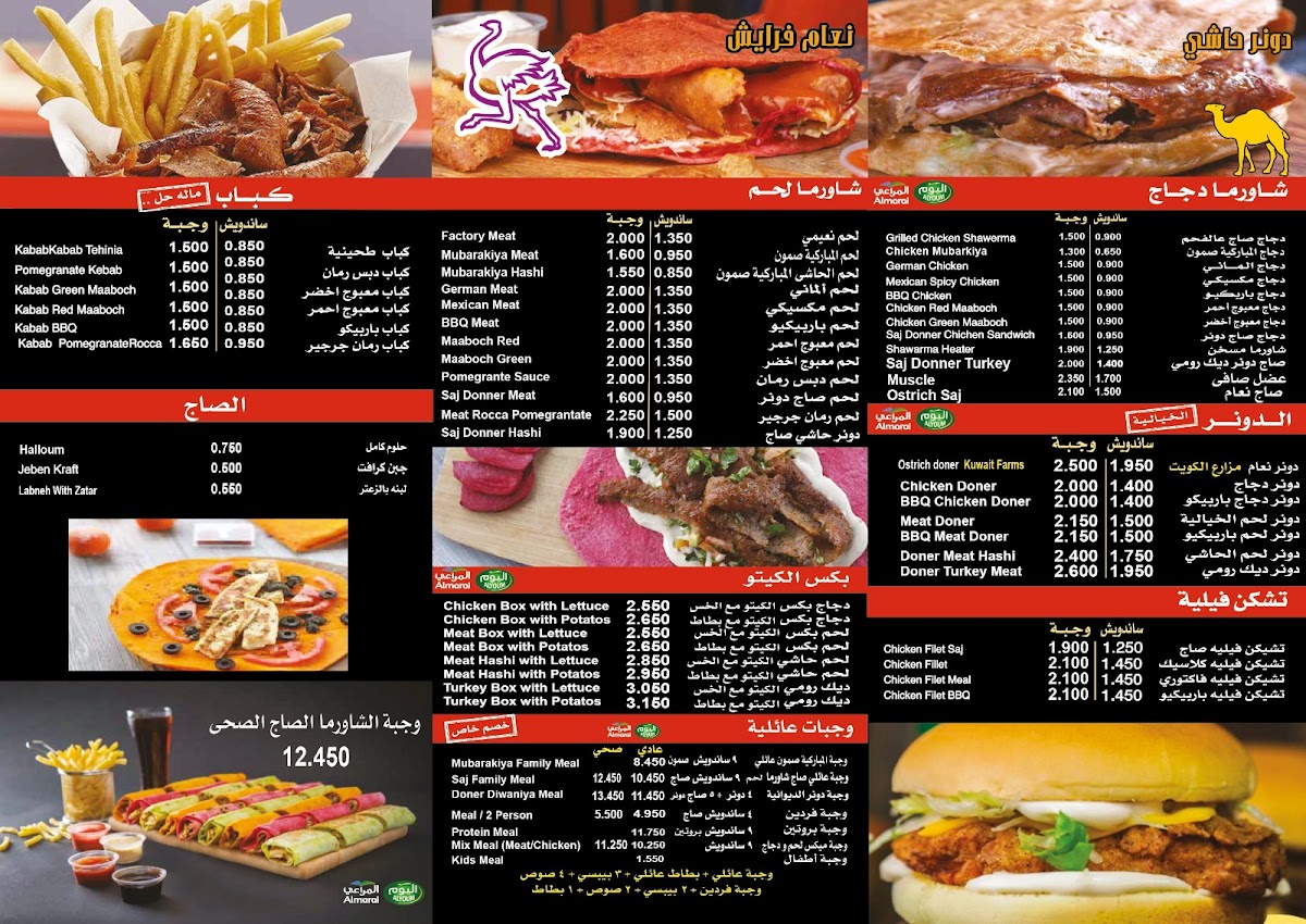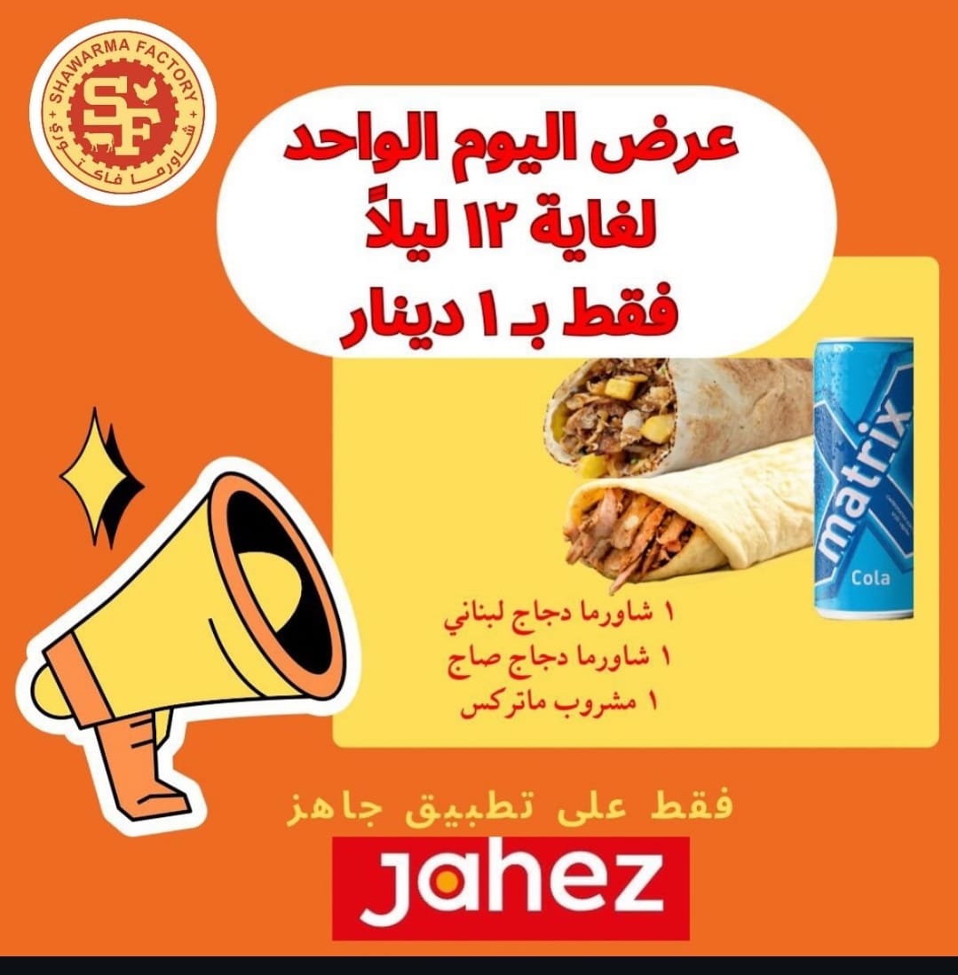 The menu at Shawarma Factory, located at عمرو بن العاص Amro Bin Al-Aas St., Salmiya, Kuwait, offers a delightful array of flavorful options that cater to a variety of tastes. One standout dish is the Shawarma Sandwich, which is a classic favorite, featuring tender, spiced meat wrapped in a soft pita bread. For those looking for something more filling, the Chicken Filet Saj is a great choice-grilled chicken fillets wrapped in Saj bread, creating a perfect blend of crispy and tender textures.